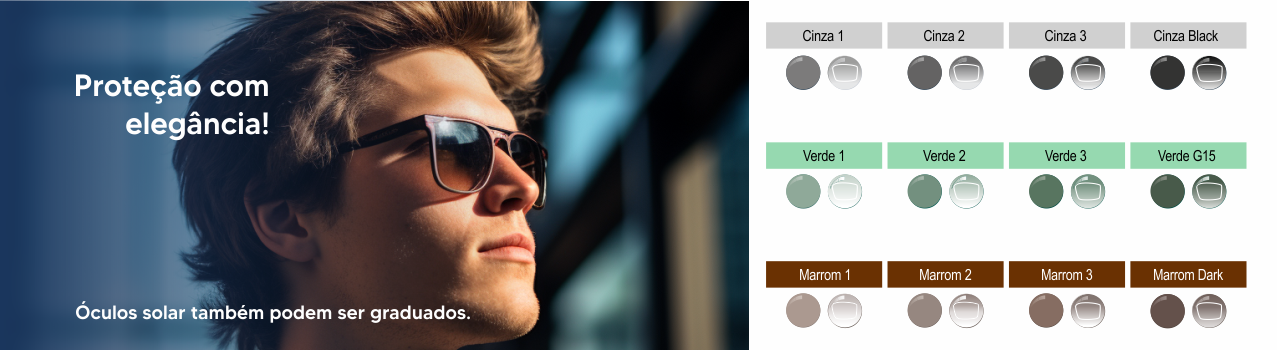 Permite personalizar as lentes com diferentes tons e cores, combinando estilo e funcionalidade. As lentes coloridas também oferecem proteção adicional contra a luz solar.